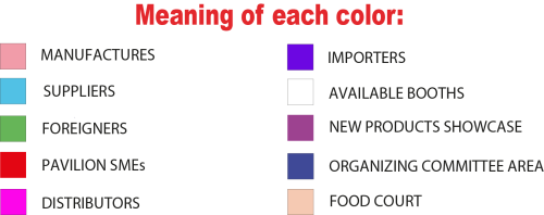 Exhibition floor plan Exhibition floor plan Meaning of each color Meaning of each color Are you interested in renting a space?Contact us and an executive will follow up on your request. Nombre Email Asunto Sitio Web Mensajae (optional) Δ Or contact us by text message via WhatsApp Privacy Notice